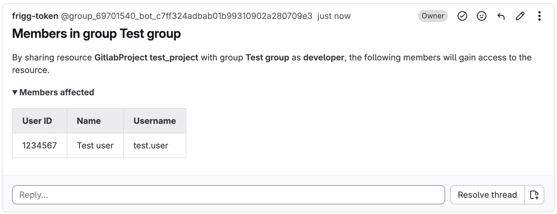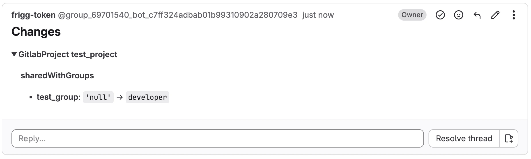 - Wait for the dry run to finish and check if the changelist contains the expected changes. When sharing a group or project with another group, Frigg will also show you which members are in the group you are sharing the resource with.