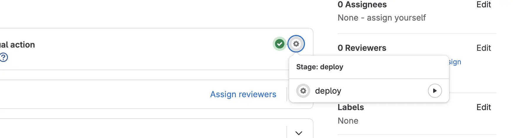 - After making sure the changes are correct, have someone check and approve your merge request and start the deployment by clicking on the play button of the deploy job